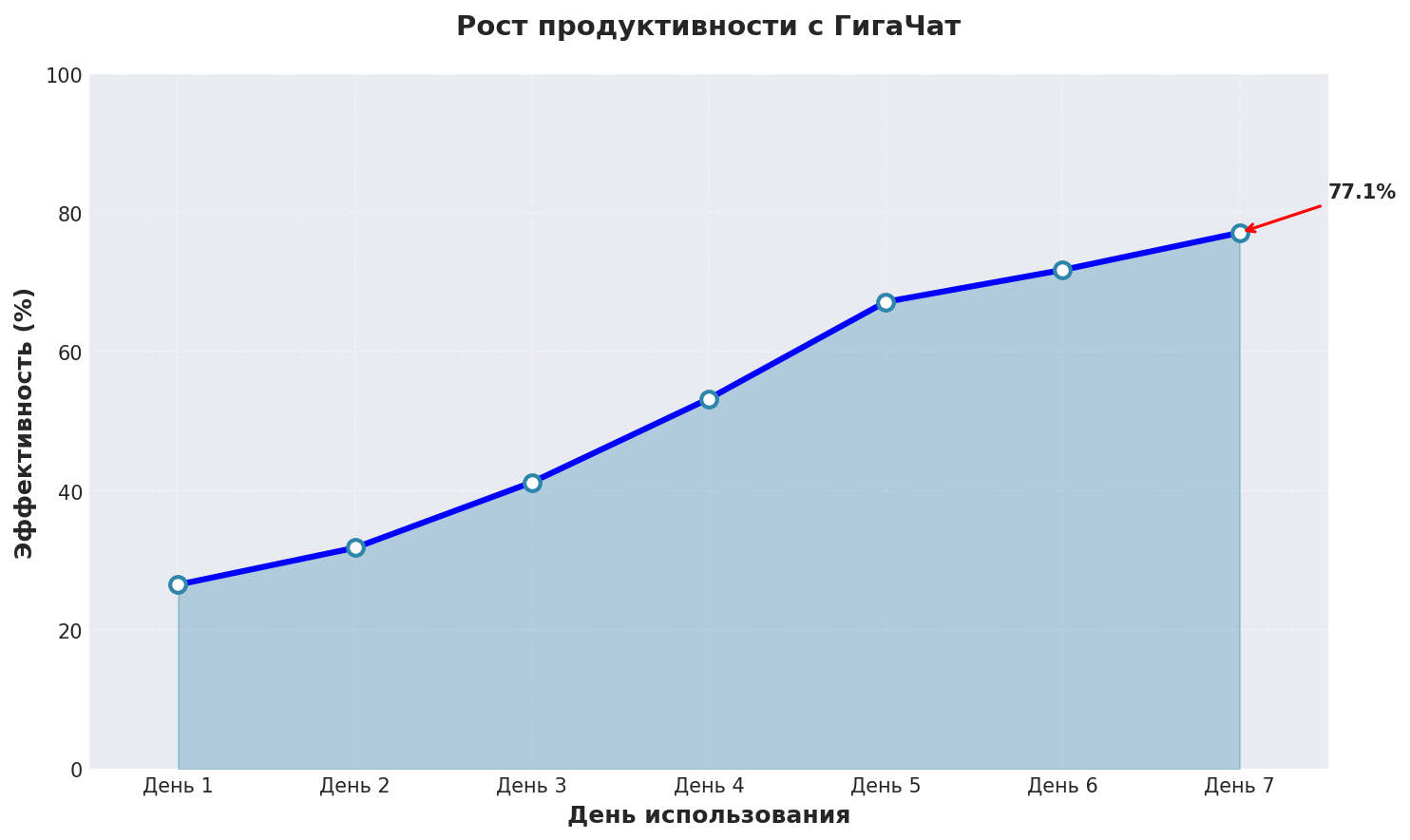 График показывает реальный рост эффективности текст с помощью нейросети бесплатно при использовании ГигаЧат с применением описанных техник