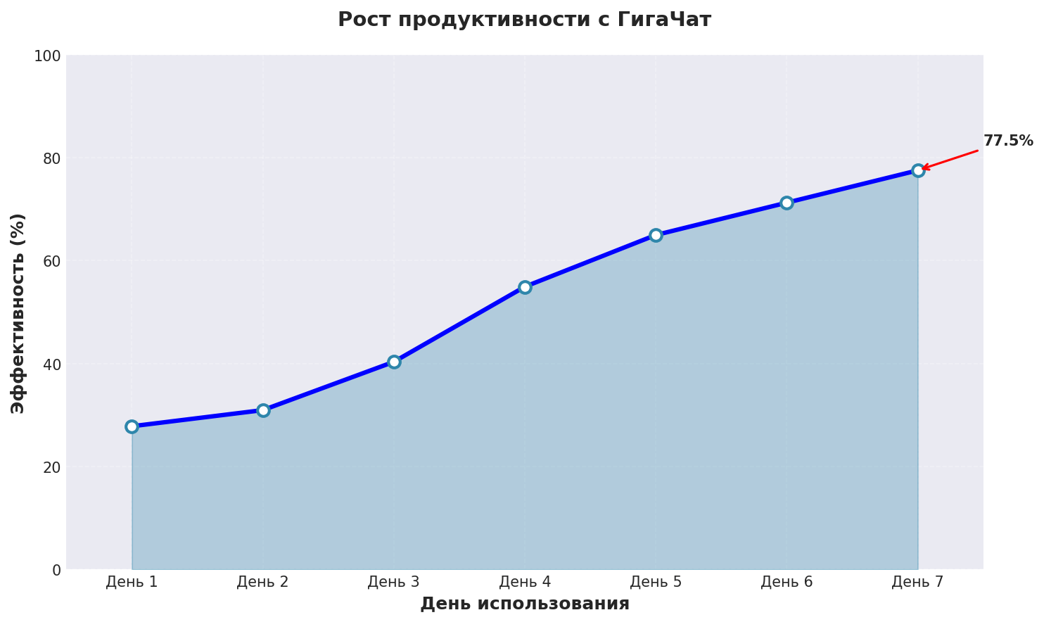 График показывает реальный рост эффективности нейросеть для создания описания при использовании ГигаЧат с применением описанных техник