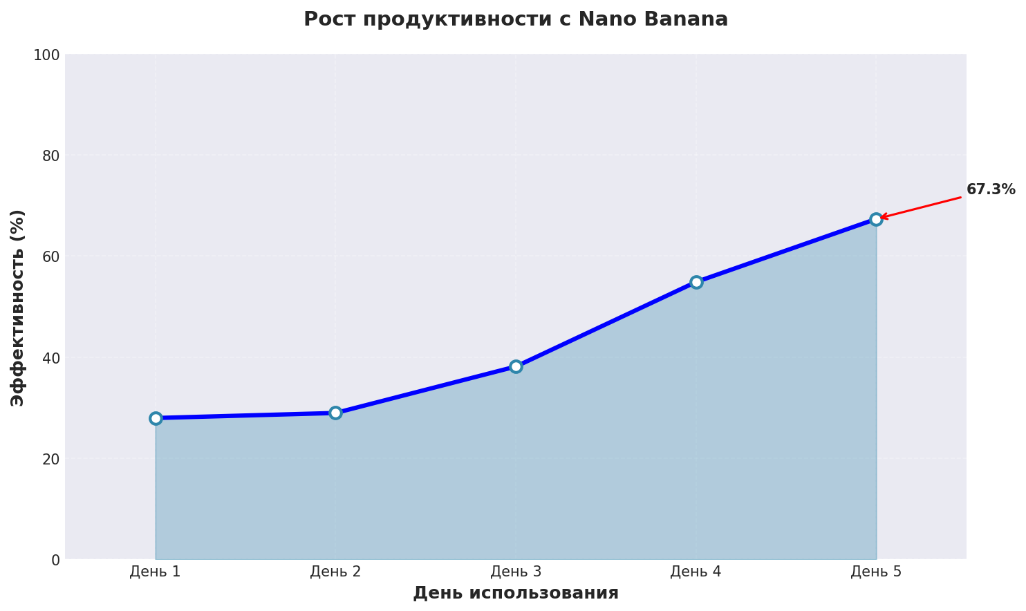 График показывает реальный рост качества изображений при использовании всех 5 способов с Nano Banana