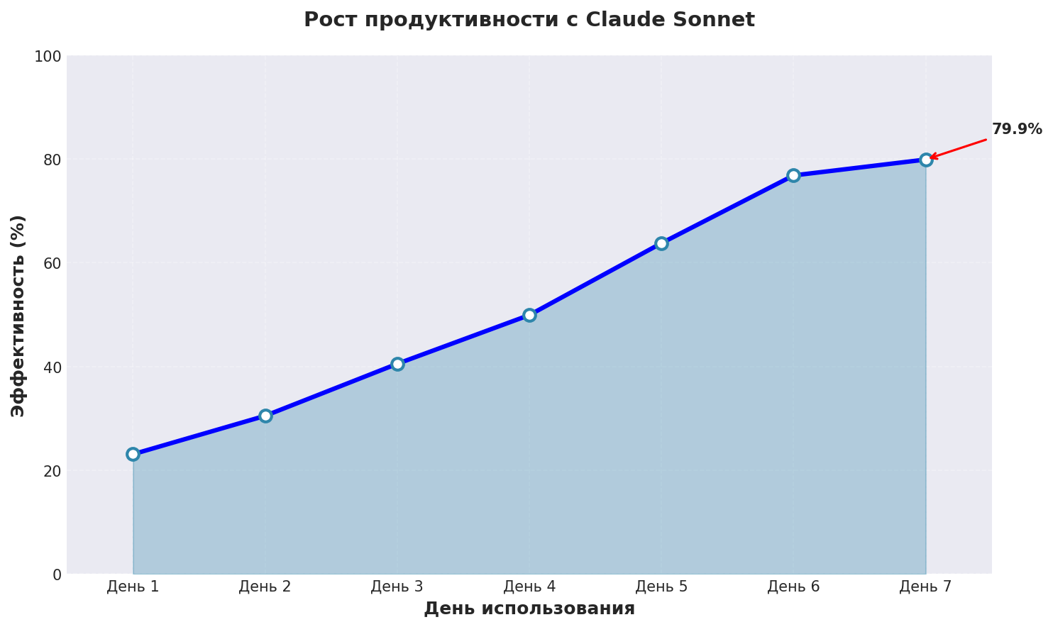 График показывает реальный рост эффективности сгенерировать текст нейросетью онлайн при использовании Claude Sonnet с применением описанных техник