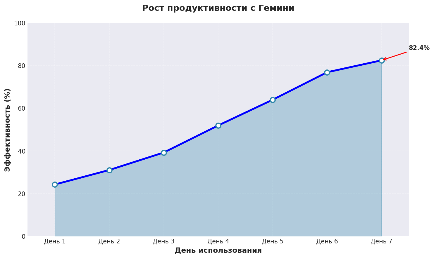 График показывает реальный рост эффективности создать текст нейросеть онлайн при использовании Гемини с применением описанных техник
