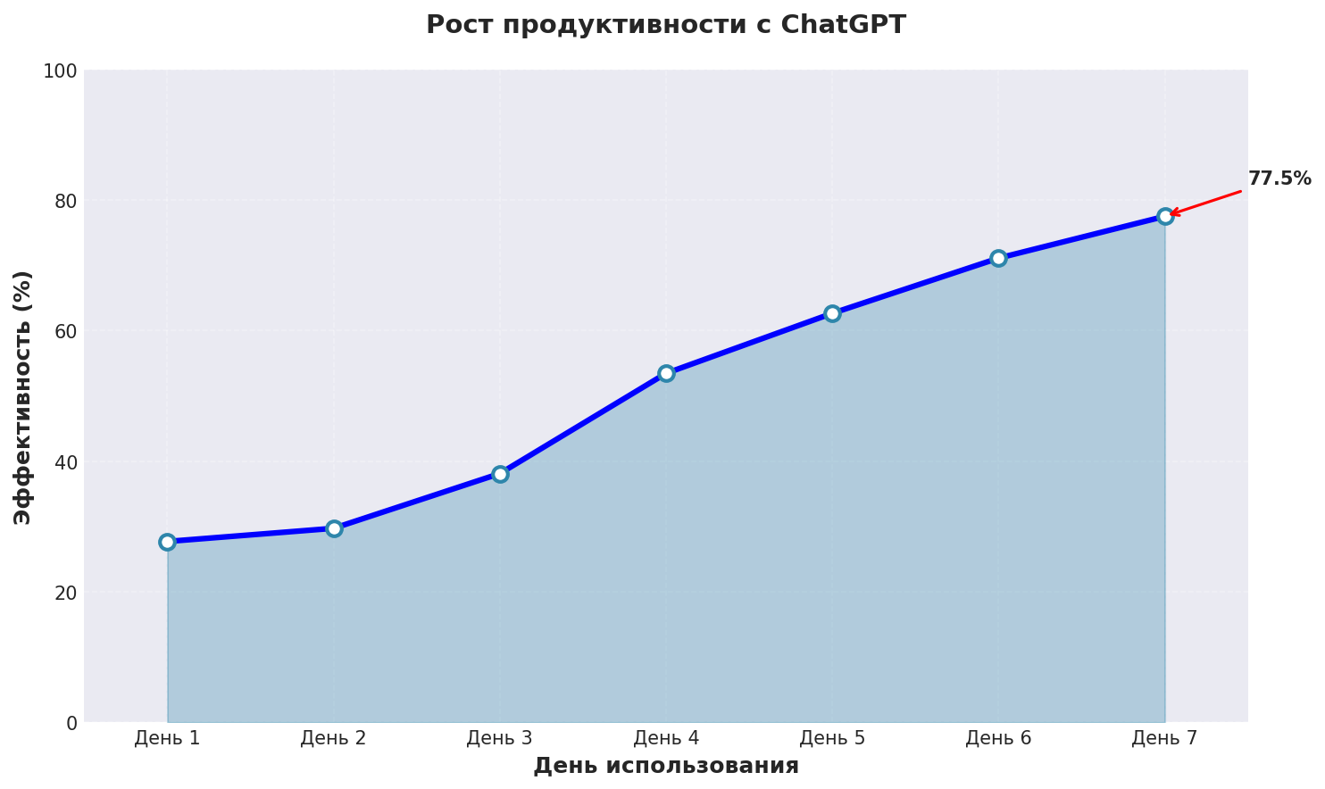 График показывает реальный рост эффективности джпт чат нейросеть при использовании ChatGPT с применением описанных техник