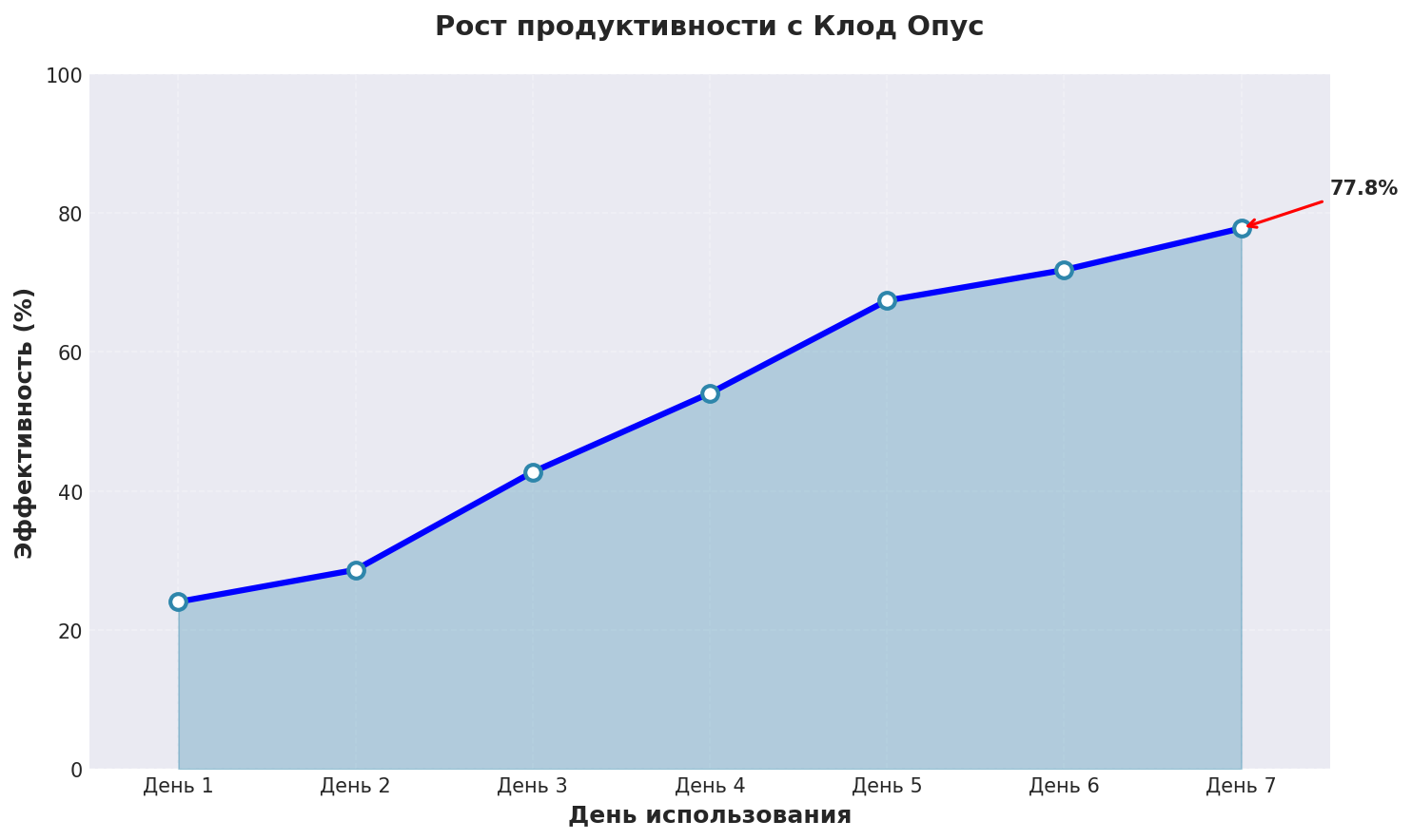 График показывает реальный рост эффективности нейросеть чат гпт при использовании Клод Опус с применением описанных техник