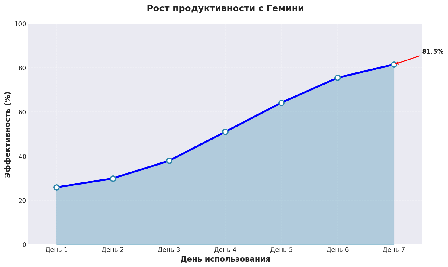 График показывает реальный рост эффективности составить текст в нейросети при использовании Гемини с применением описанных техник