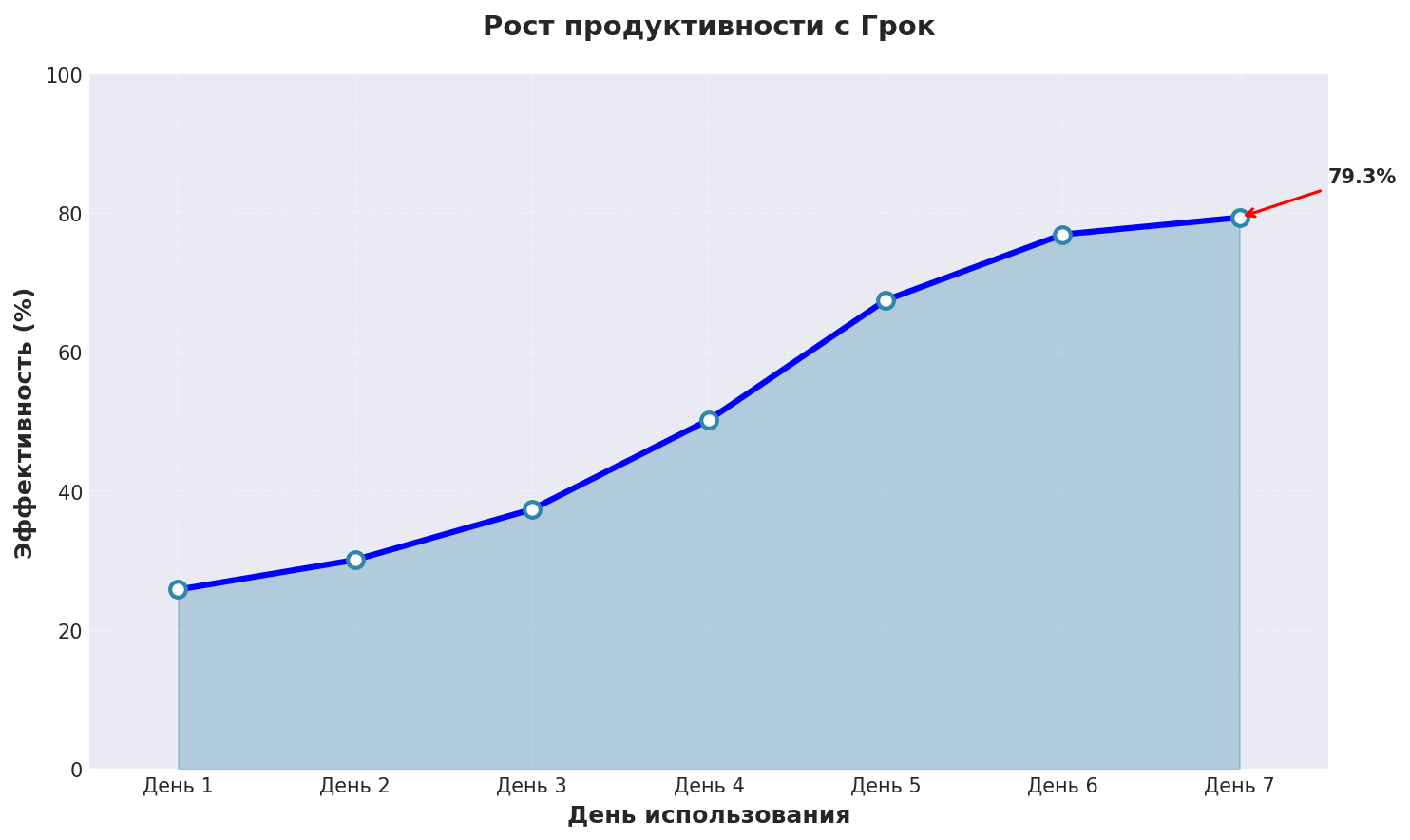 График показывает реальный рост эффективности составить текст в нейросети при использовании Грок с применением описанных техник