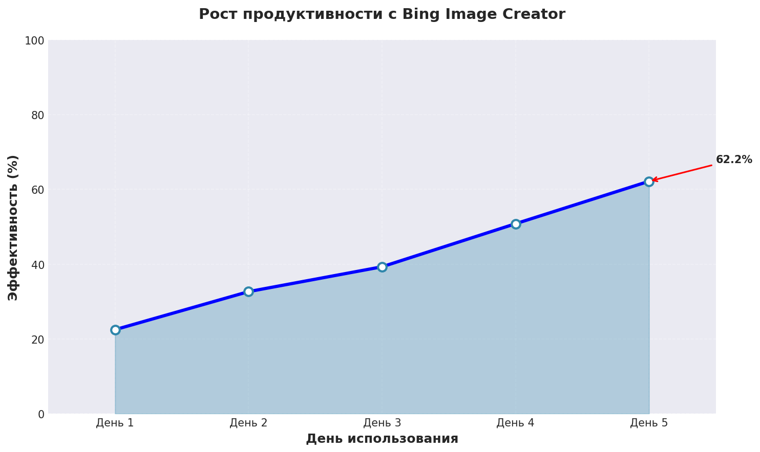График показывает реальный рост качества изображений при использовании всех 5 способов с Bing Image Creator