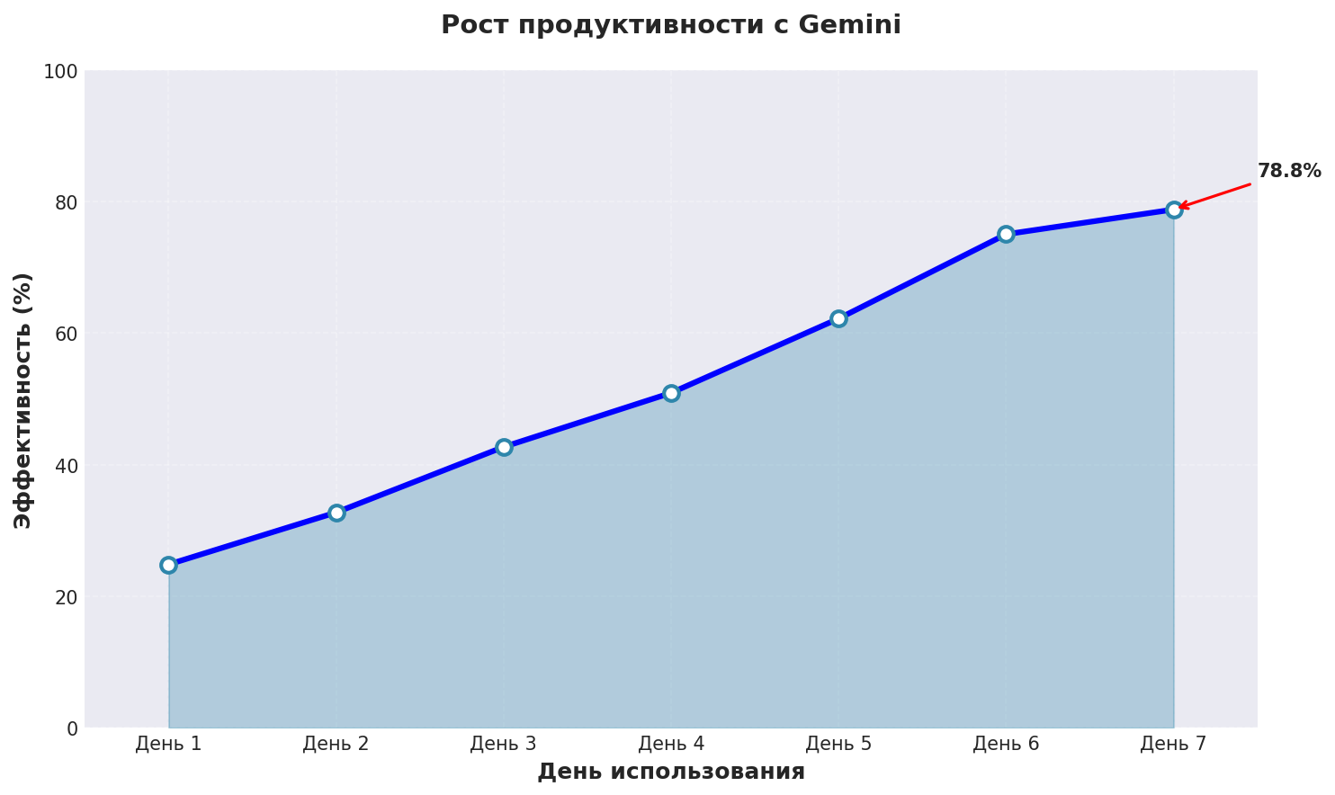 График показывает реальный рост эффективности нейросеть для общения при использовании Gemini с применением описанных техник