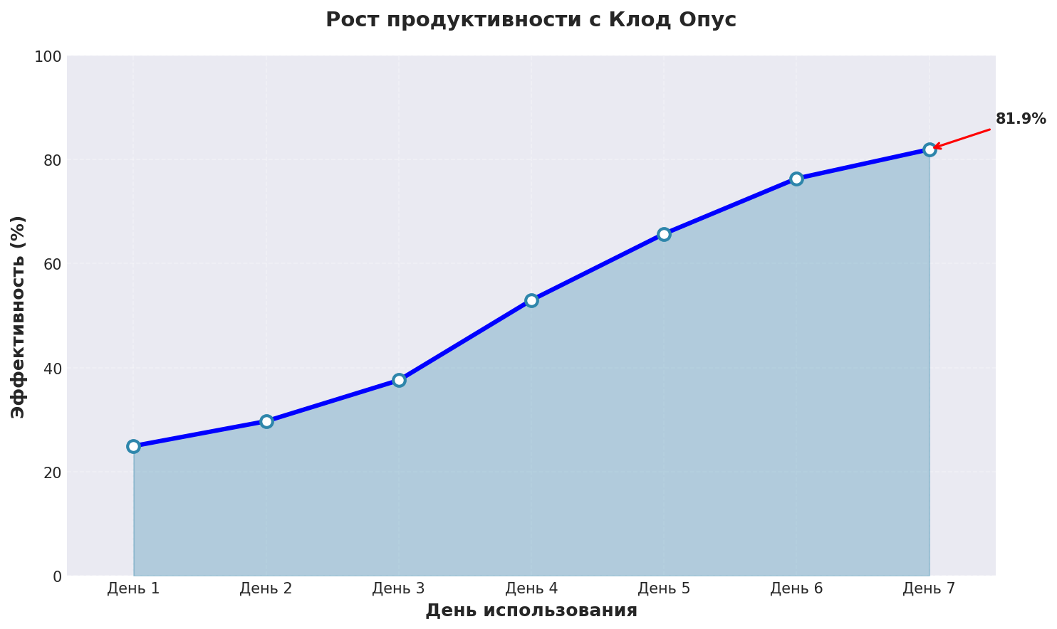 График показывает реальный рост эффективности нейросеть фанфиков при использовании Клод Опус с применением описанных техник