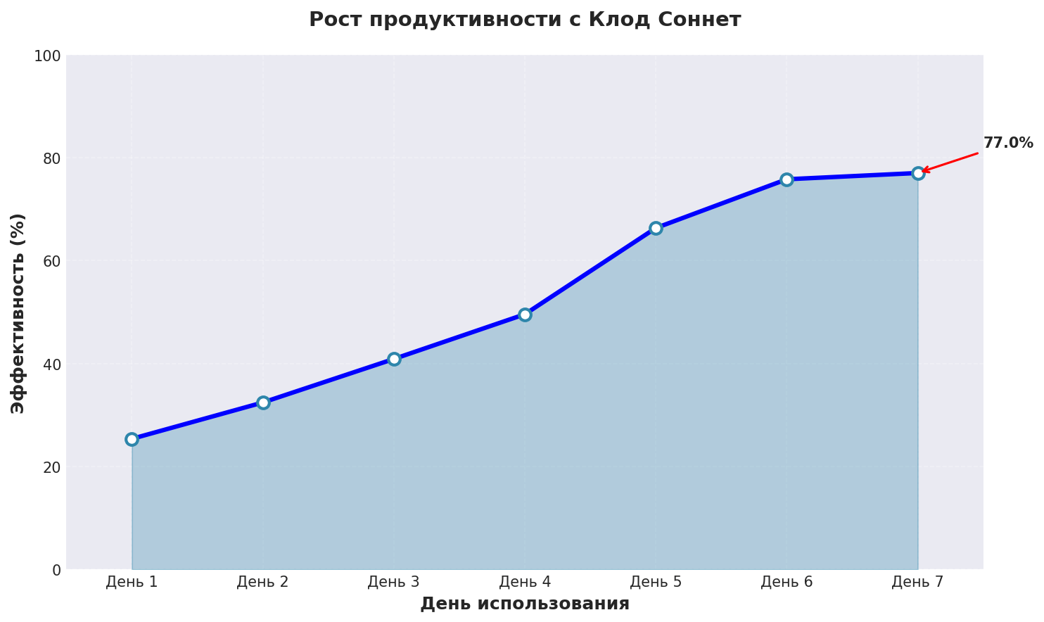 График показывает реальный рост эффективности нейросеть на русском языке текст при использовании Клод Соннет с применением описанных техник