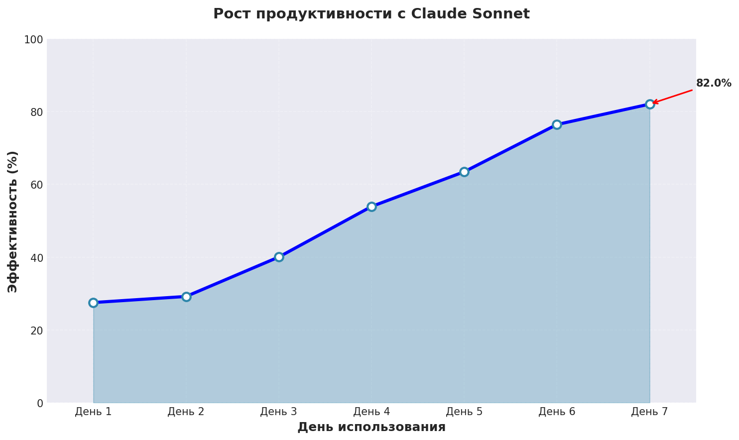 График показывает реальный рост эффективности нейросеть рассказ при использовании Claude Sonnet с применением описанных техник