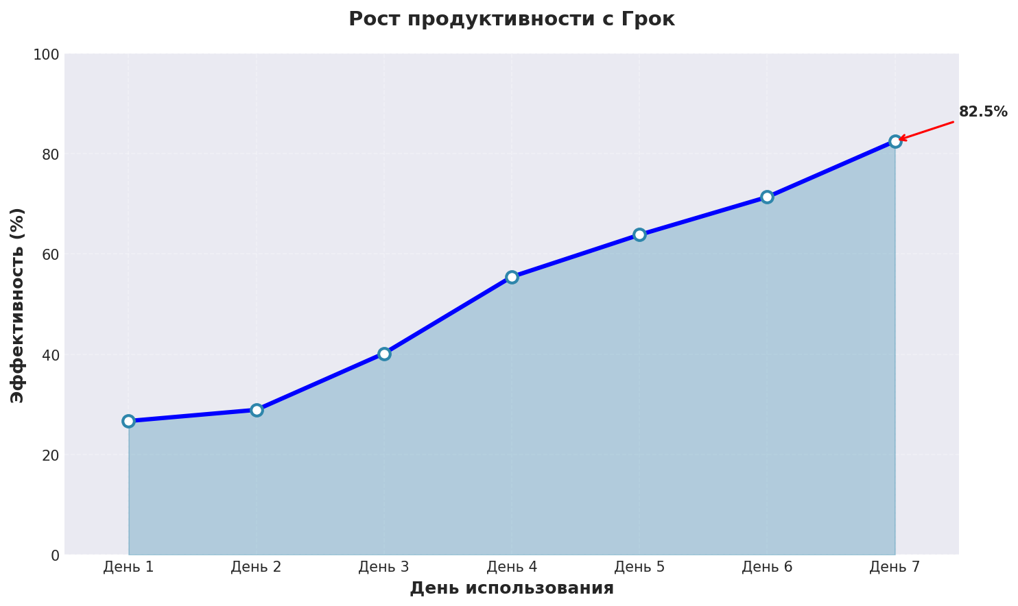 График показывает реальный рост эффективности нейросеть фанфиков при использовании Грок с применением описанных техник