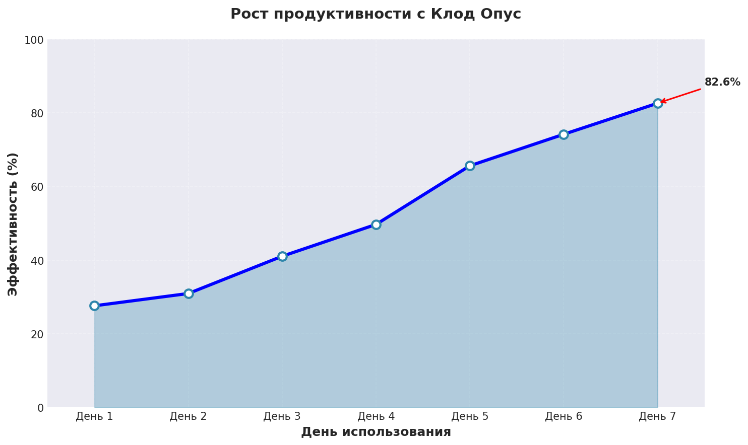 График показывает реальный рост эффективности нейросеть написать текст при использовании Клод Опус с применением описанных техник