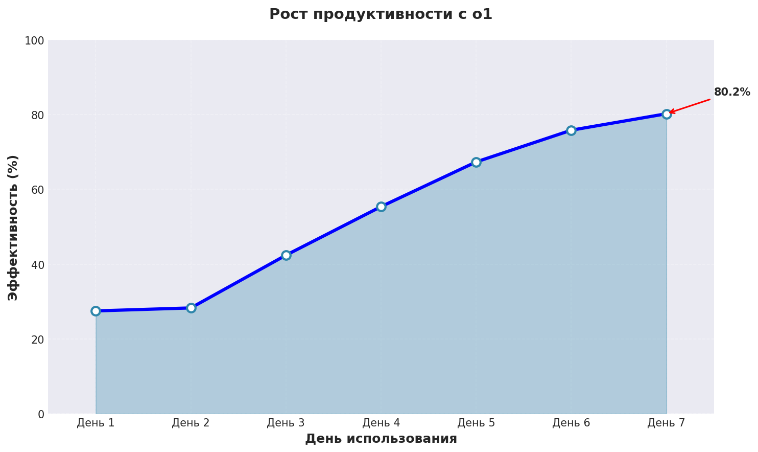 График показывает реальный рост эффективности нейросеть письмо при использовании o1 с применением описанных техник