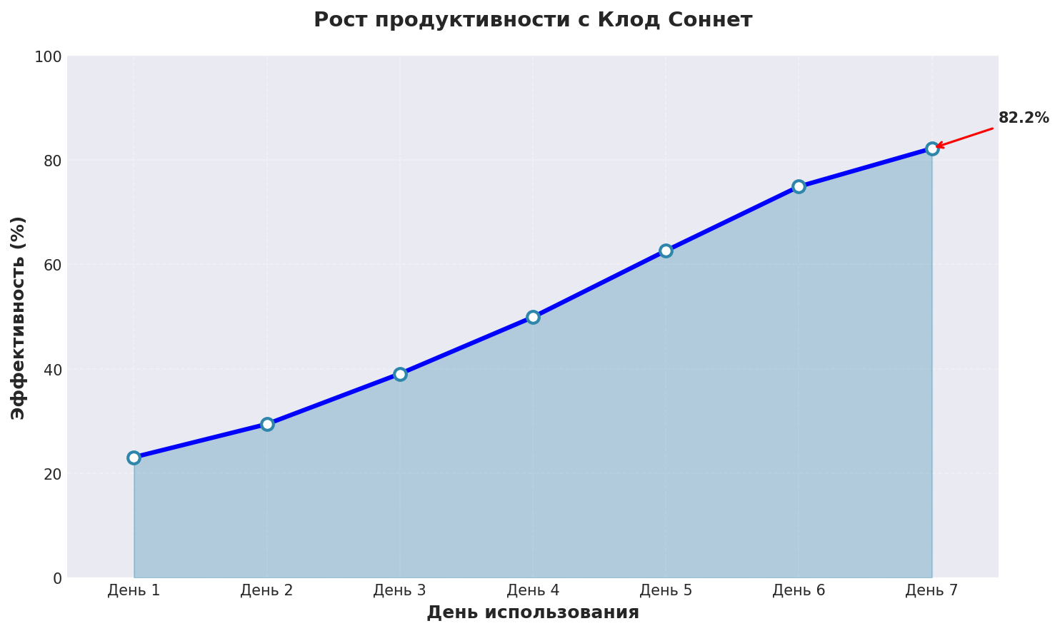 График показывает реальный рост эффективности нейросеть по описанию бесплатно при использовании Клод Соннет с применением описанных техник