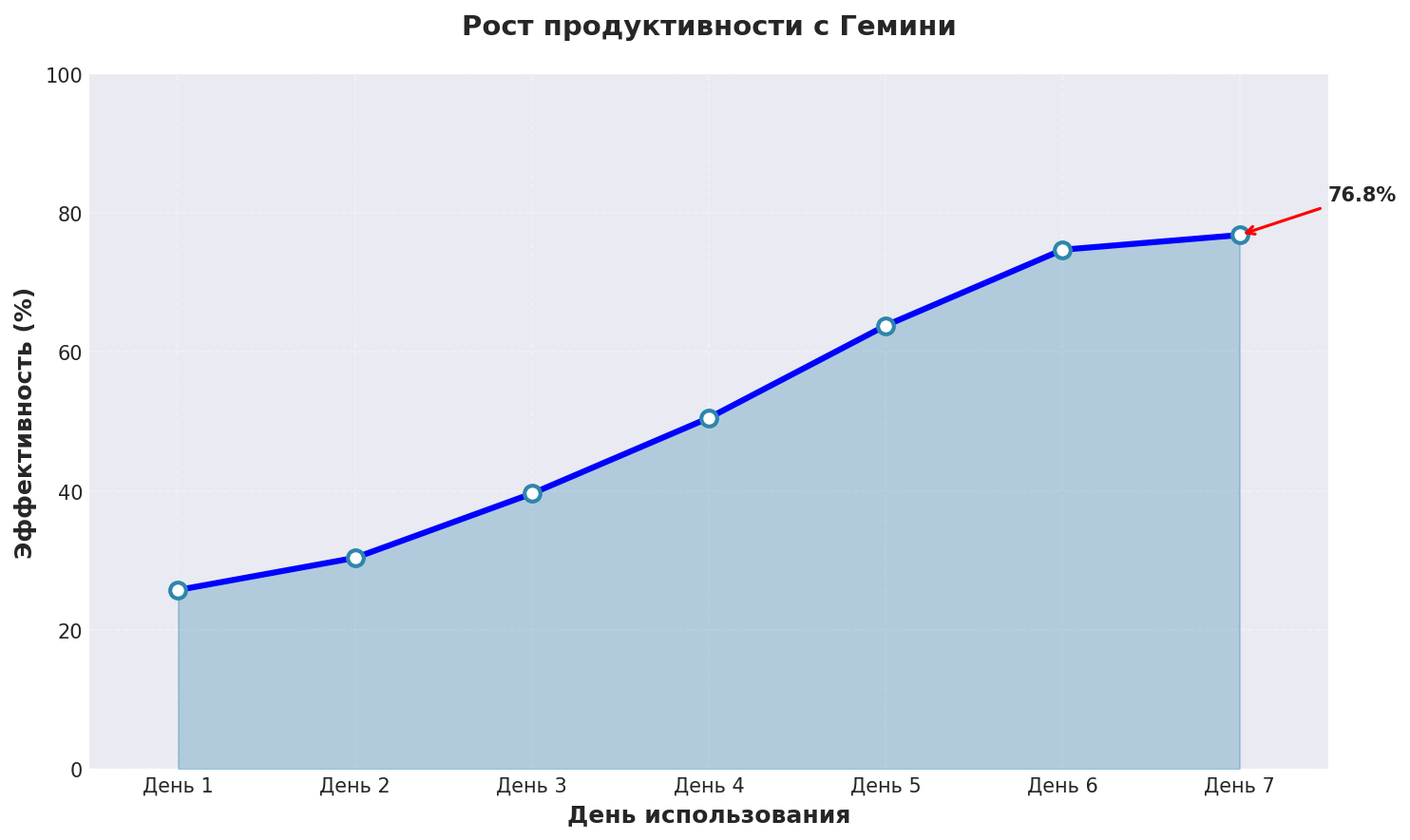 График показывает реальный рост эффективности нейросеть сочинение при использовании Гемини с применением описанных техник