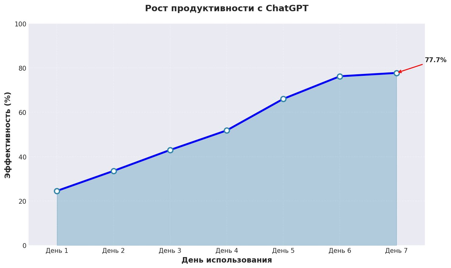 График показывает реальный рост эффективности нейросеть стихи при использовании ChatGPT с применением описанных техник