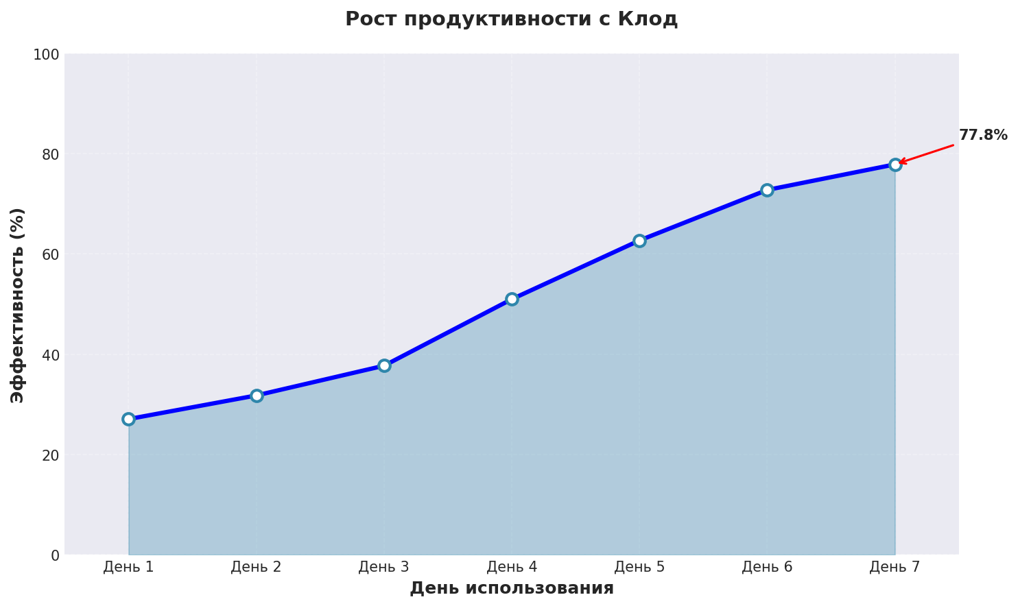 График показывает реальный рост эффективности нейросеть на русском языке текст при использовании Клод с применением описанных техник