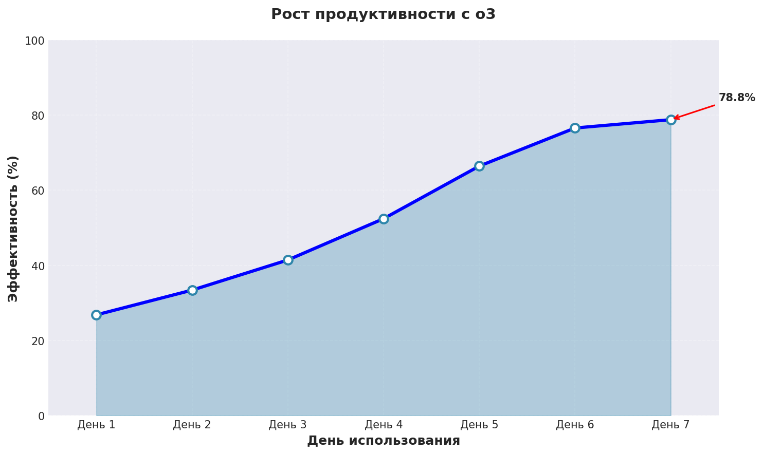 График показывает реальный рост эффективности нейросеть перевод при использовании o3 с применением описанных техник