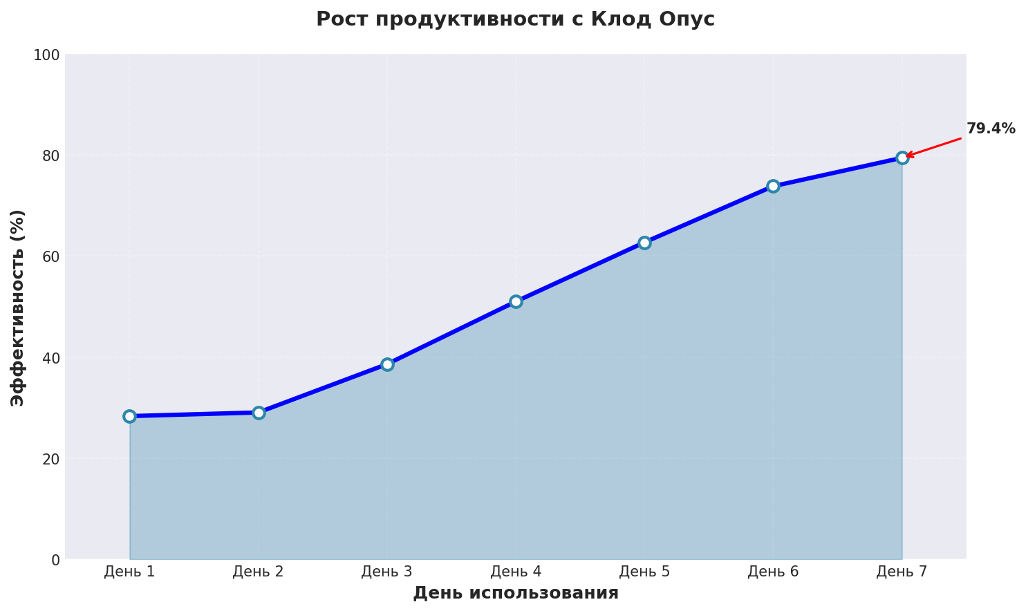 График показывает реальный рост эффективности нейросети для генерации текста на русском бесплатно при использовании Клод Опус с применением описанных техник