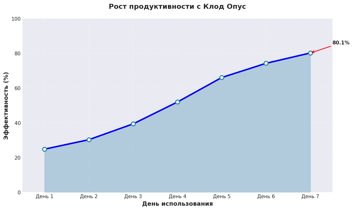 График показывает реальный рост эффективности пост с помощью нейросети при использовании Клод Опус с применением описанных техник