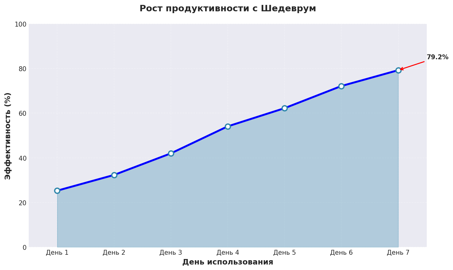 График показывает реальный рост эффективности нейросеть чат на русском при использовании Шедеврум с применением описанных техник