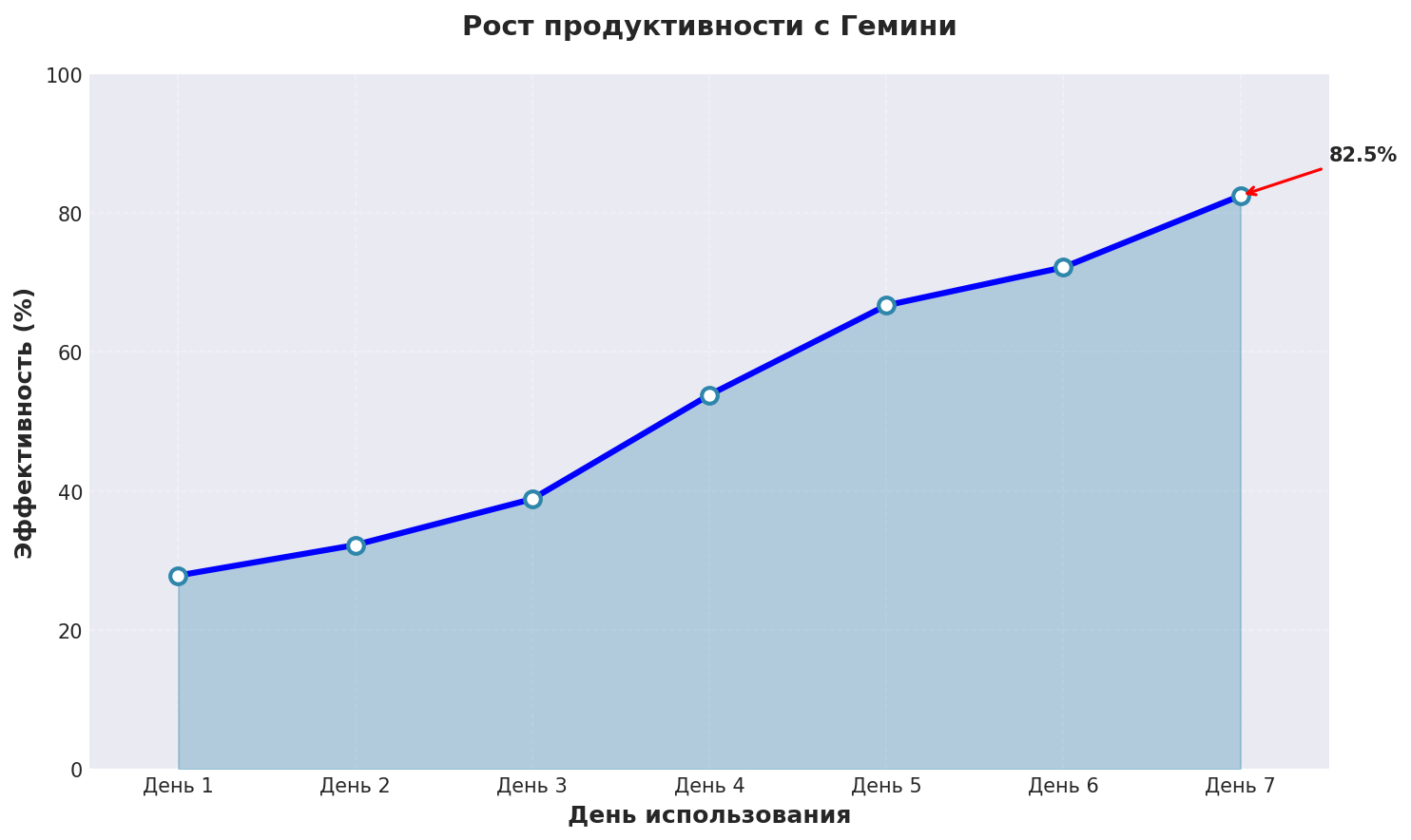 График показывает реальный рост эффективности нейросеть для контента при использовании Гемини с применением описанных техник