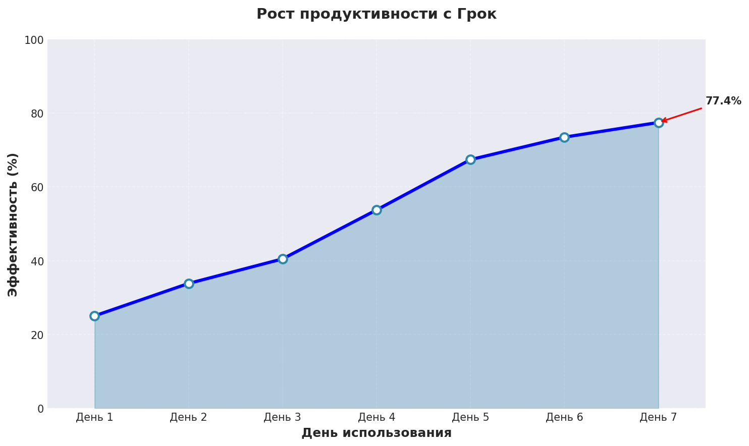 График показывает реальный рост эффективности нейросеть генератор текста при использовании Грок с применением описанных техник