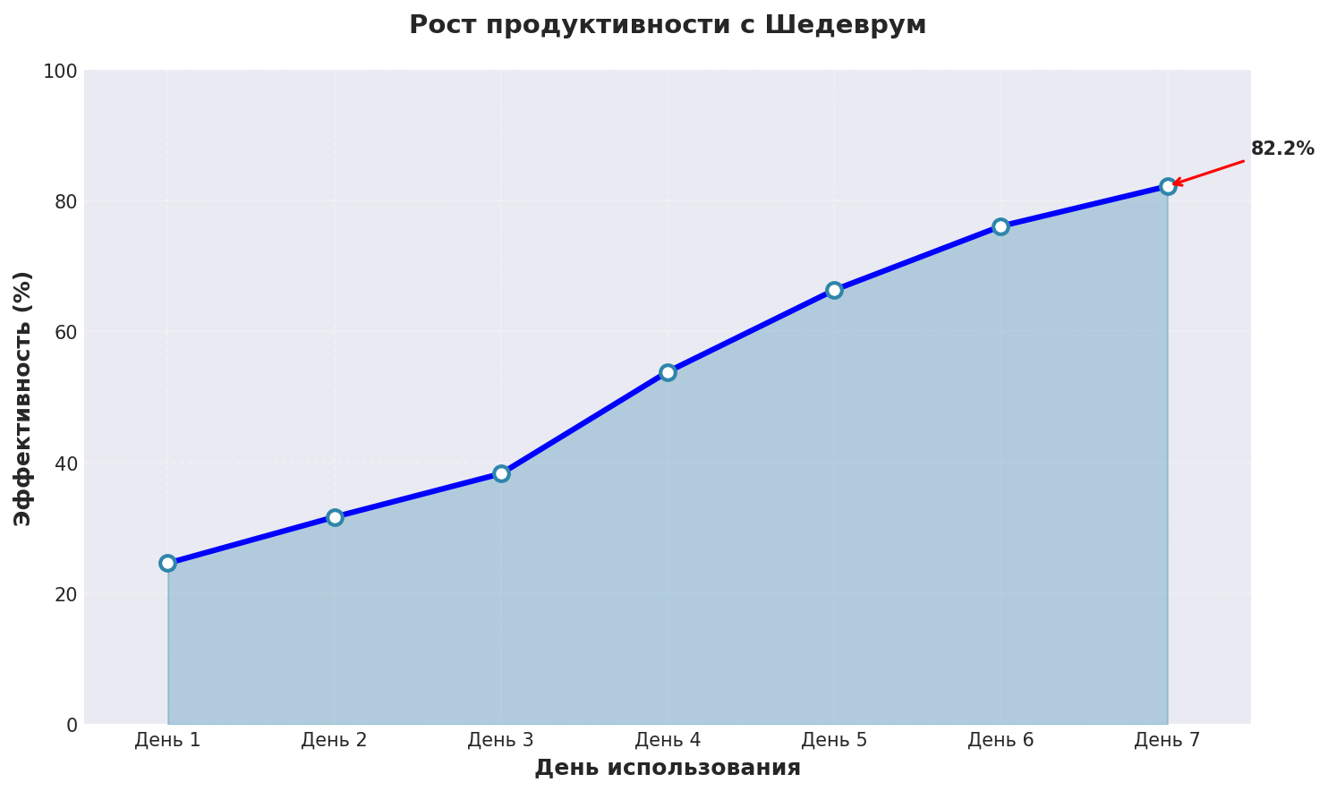 График показывает реальный рост эффективности нейросеть написать стих при использовании Шедеврум с применением описанных техник