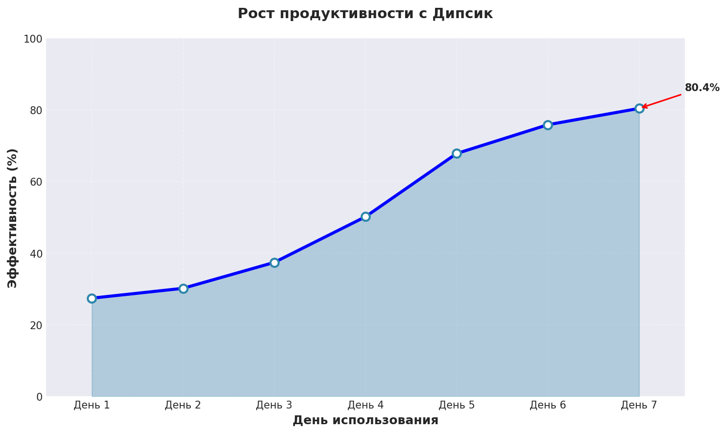 График показывает реальный рост эффективности нейросеть редактор текста при использовании Дипсик с применением описанных техник