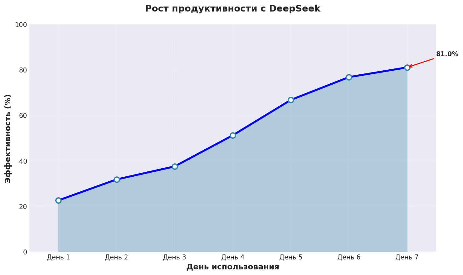 График показывает реальный рост эффективности скачать русскую нейросеть при использовании DeepSeek с применением описанных техник