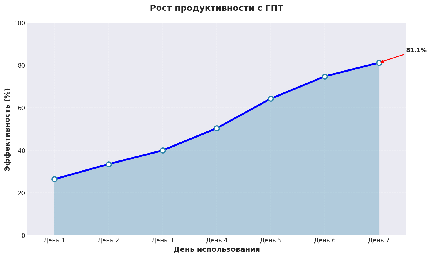 График показывает реальный рост эффективности запросы в нейросеть при использовании ГПТ с применением описанных техник