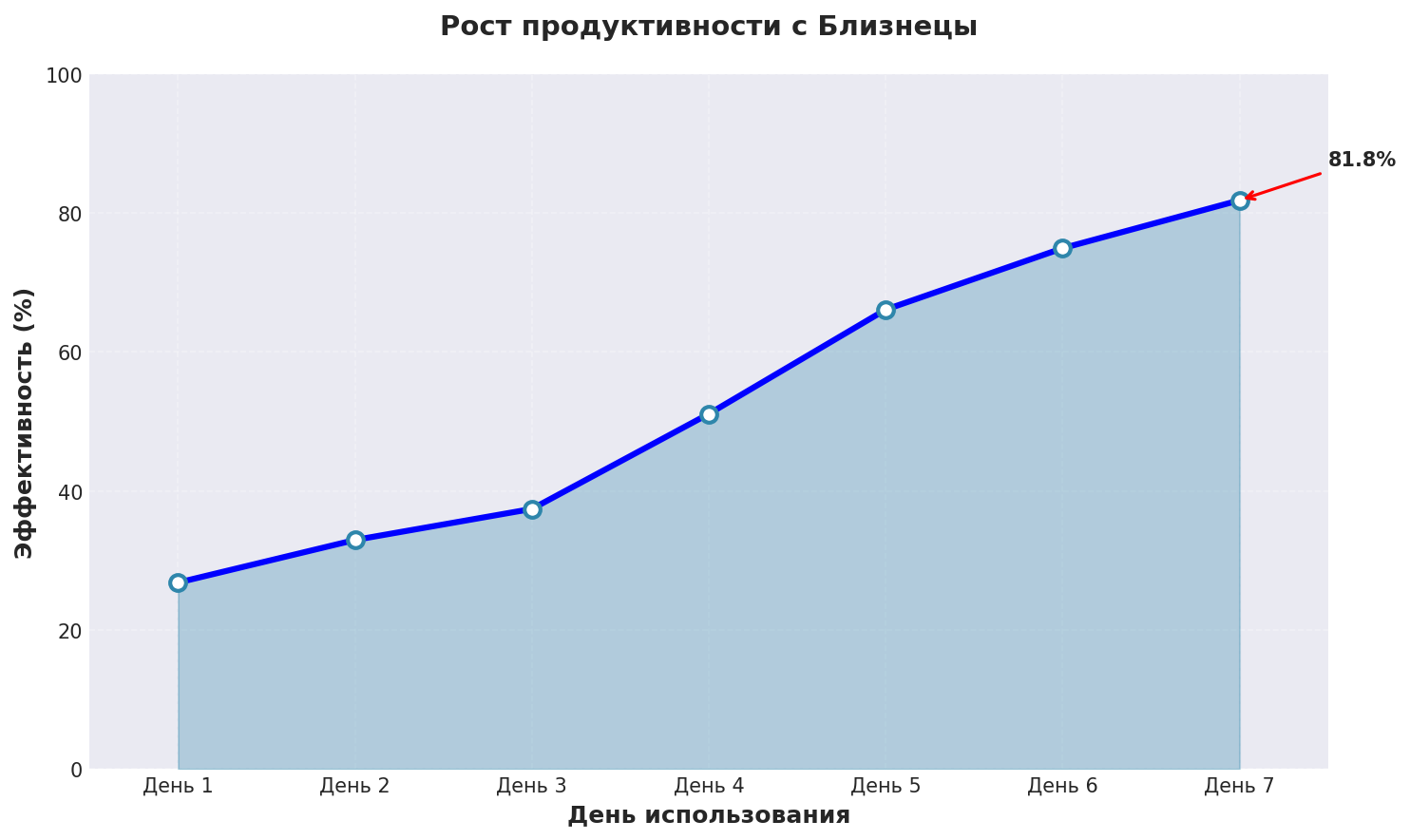 График показывает реальный рост эффективности чат жпти нейросеть при использовании Близнецы с применением описанных техник