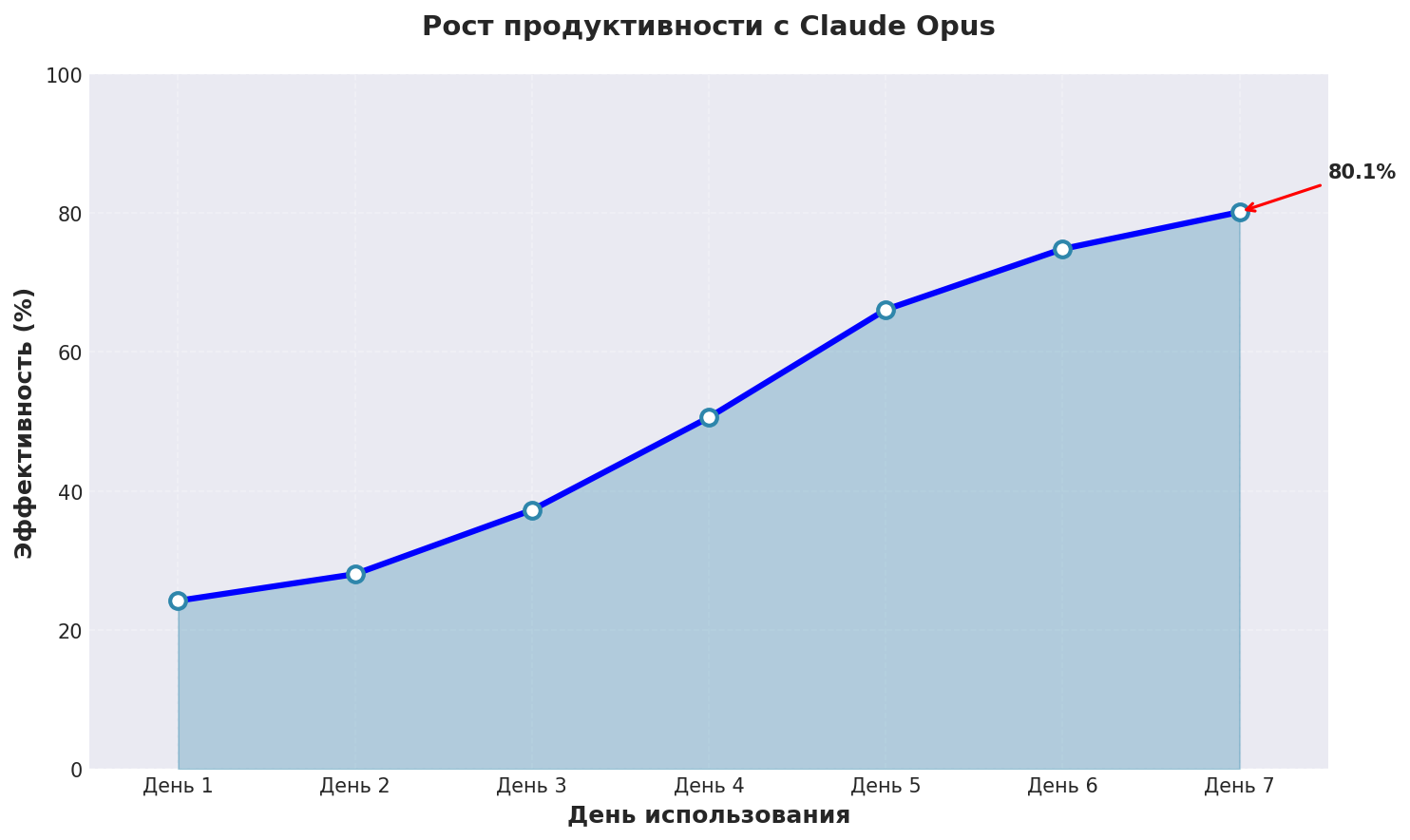График показывает реальный рост эффективности чат жпти нейросеть при использовании Claude Opus с применением описанных техник