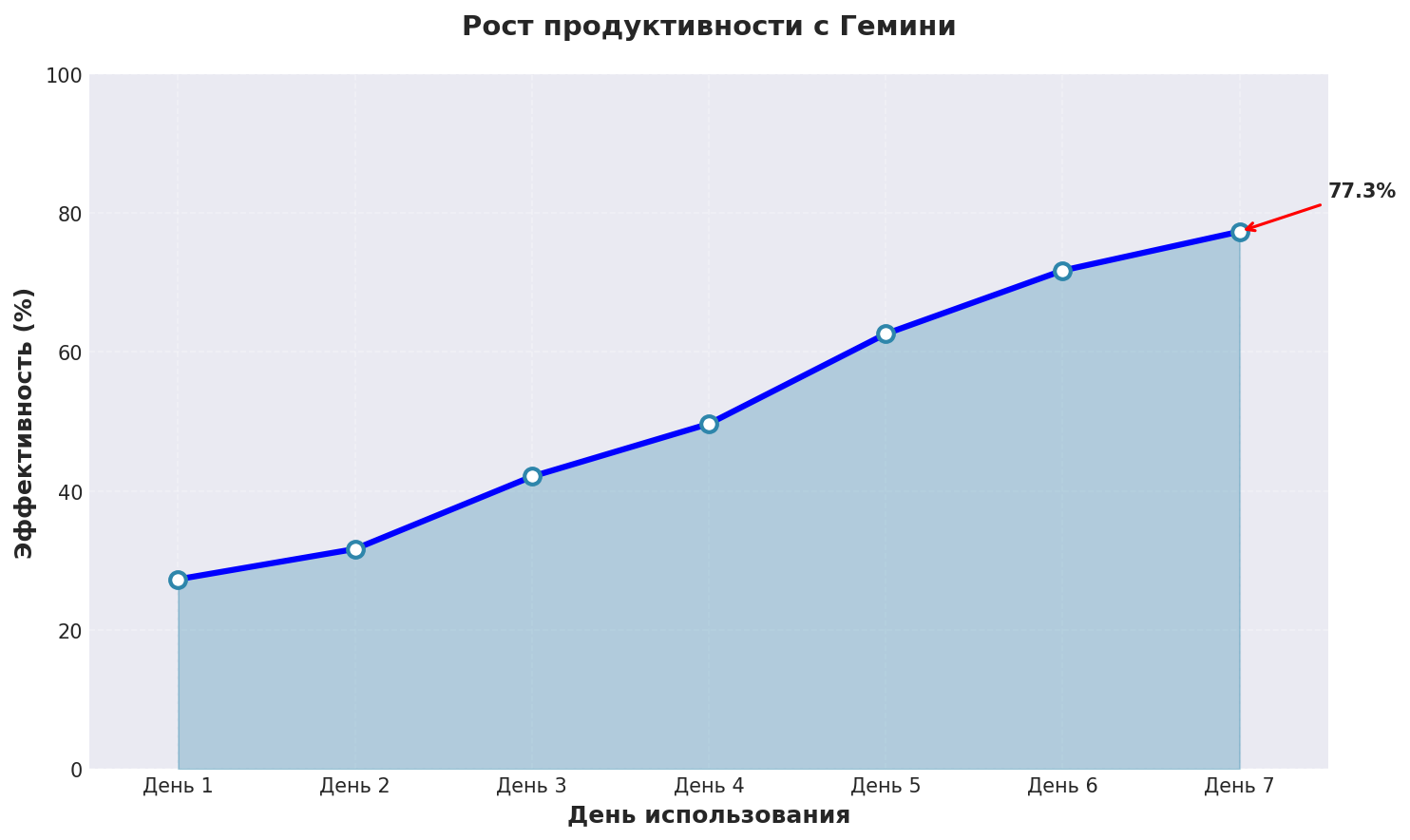 График показывает реальный рост эффективности пост с помощью нейросети при использовании Гемини с применением описанных техник
