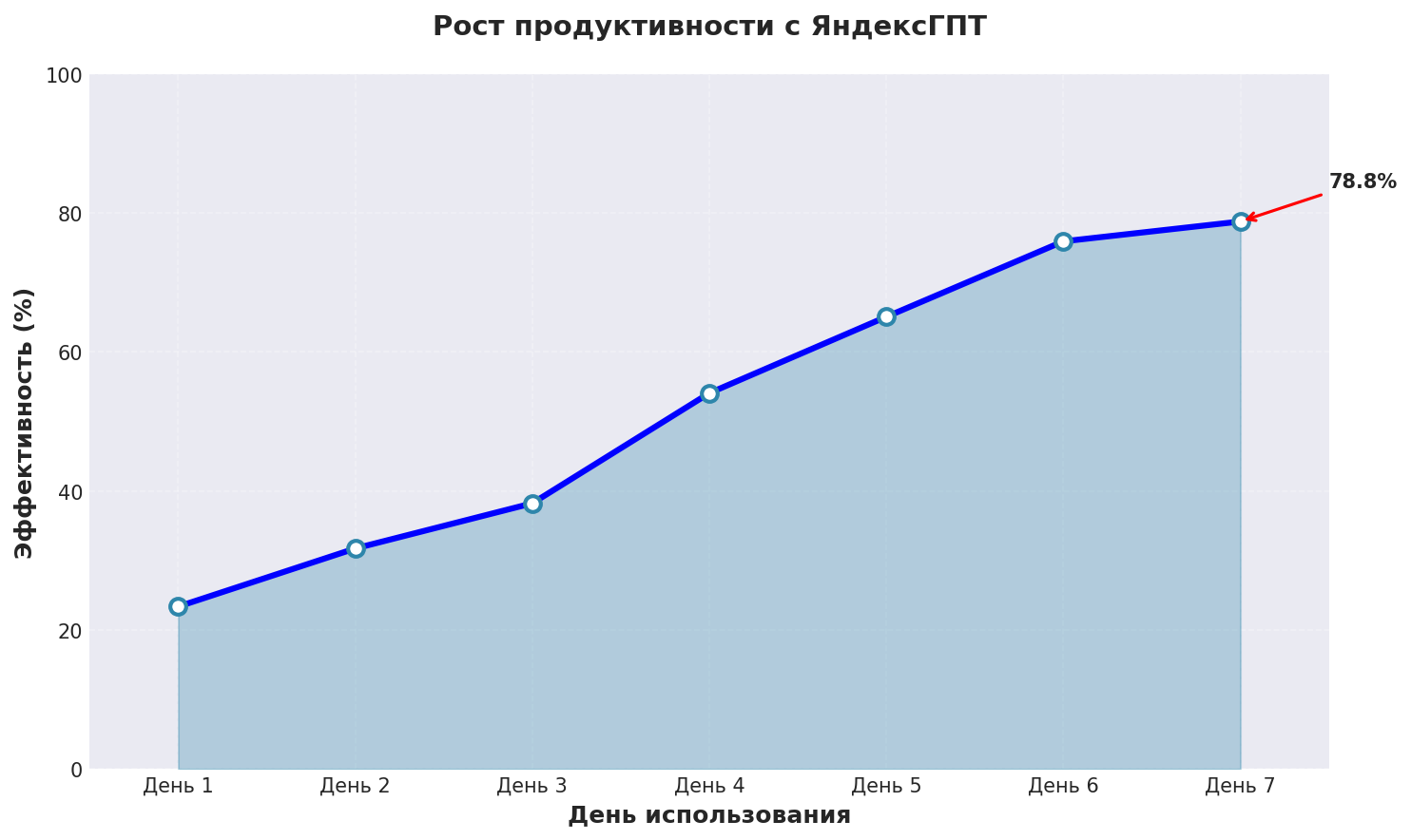 График показывает реальный рост эффективности скачать русскую нейросеть при использовании ЯндексГПТ с применением описанных техник